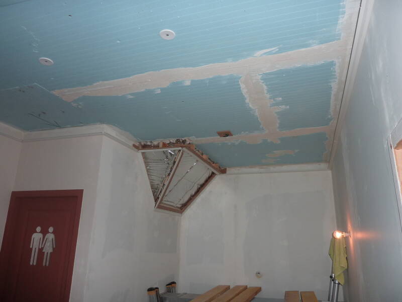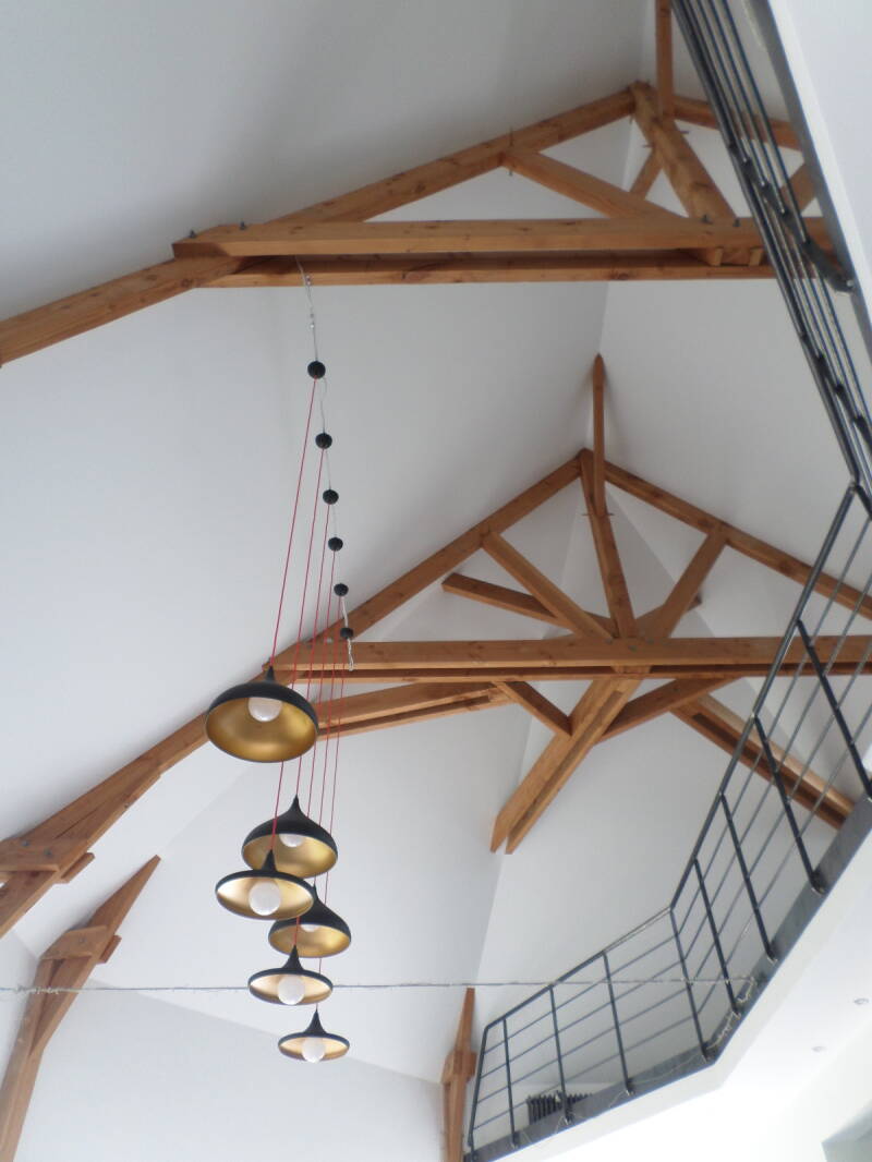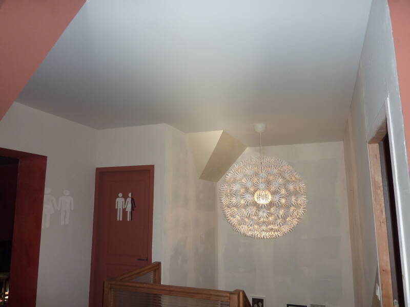 Le résultat est impeccable pour un plafond particulièrement complexe du fait de sa hauteur, ses multi-pans et ses nombreuses poutres ; mais l'expérience et le savoir faire rende le plafond tendu adaptable à toutes situations.